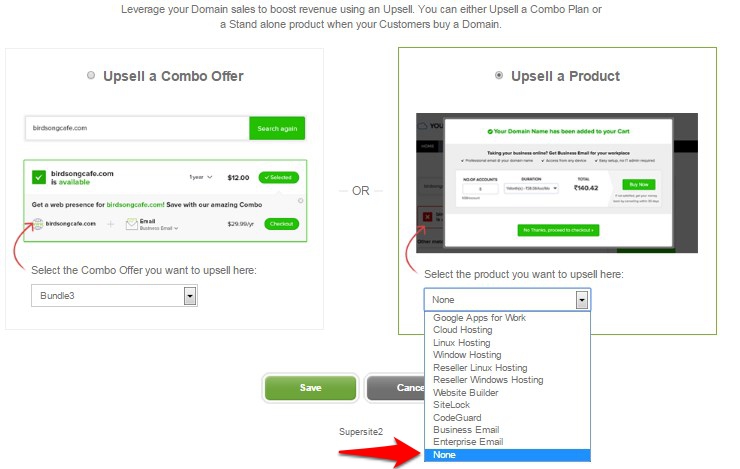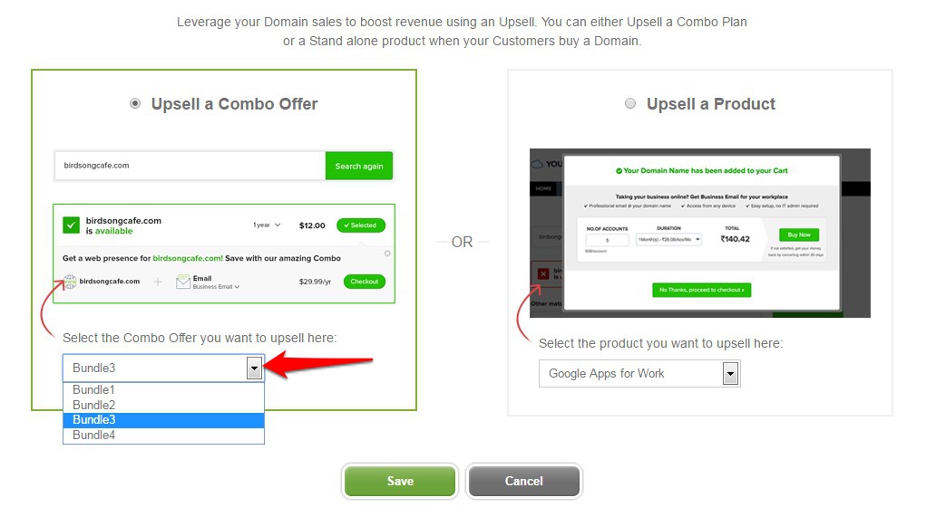 You may choose to upsell either a Combo Plan or any other product. Click on Upsell a Combo Plan or Upsell a Product as required.
