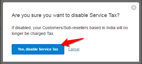 Click on the Yes, disable Service Tax button to confirm.