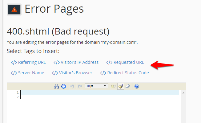 • Add your custom HTML content for the error page. You may insert any of the available tags to your custom error page.