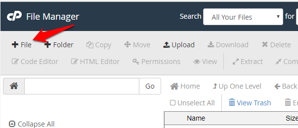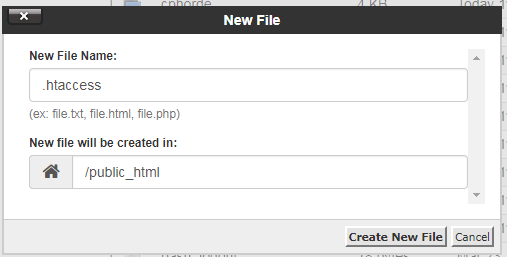 • If you still do not find the .htaccess file, you can create it by clicking on the File option.