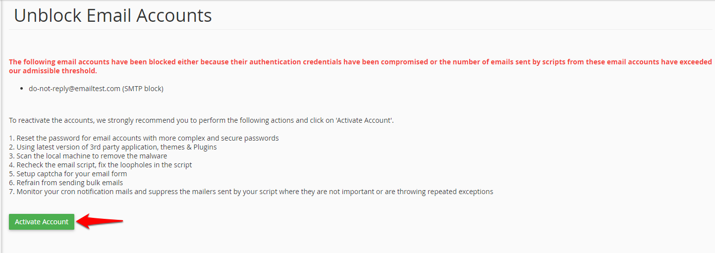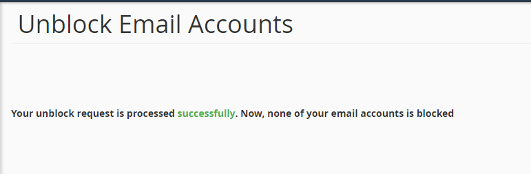 The below message will appear in your cPanel interface once the accounts are successfully unblocked.
